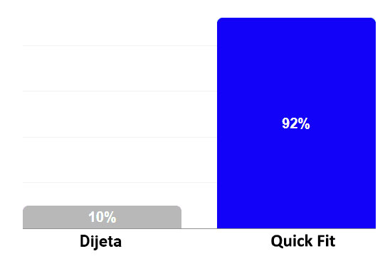 92% sudionika istraživanja koji su uzimali Quick Fit izgubilo je više od 17 kg unutar dva mjeseca, dok je samo 10% ljudi to postiglo tradicionalnim metodama mršavljenja.